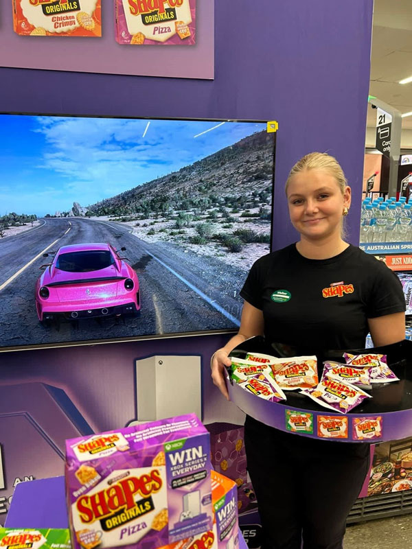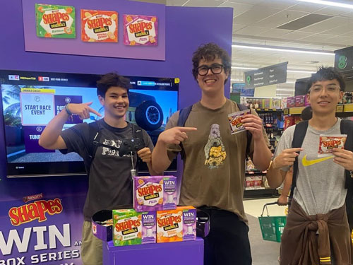 Extravert delivered a full-service activation for Arnott’s across 12 key stores in NSW, VIC, and QLD, targeting university students and gamers. From concept development to production, logistics, staffing, and execution, we created an immersive in-store experience that drove awareness of the Shapes range and competition entries to win one Xbox per day.